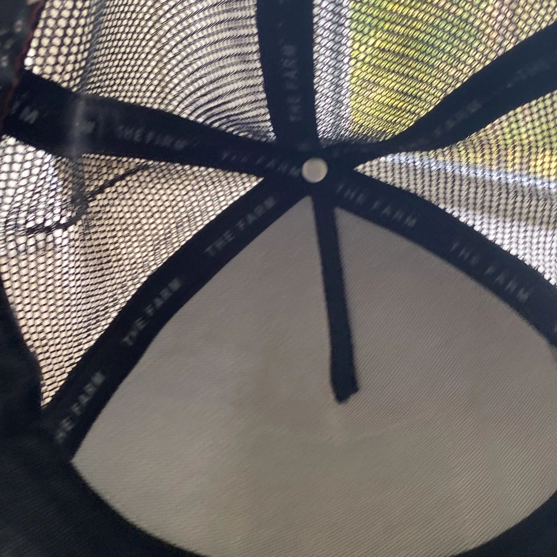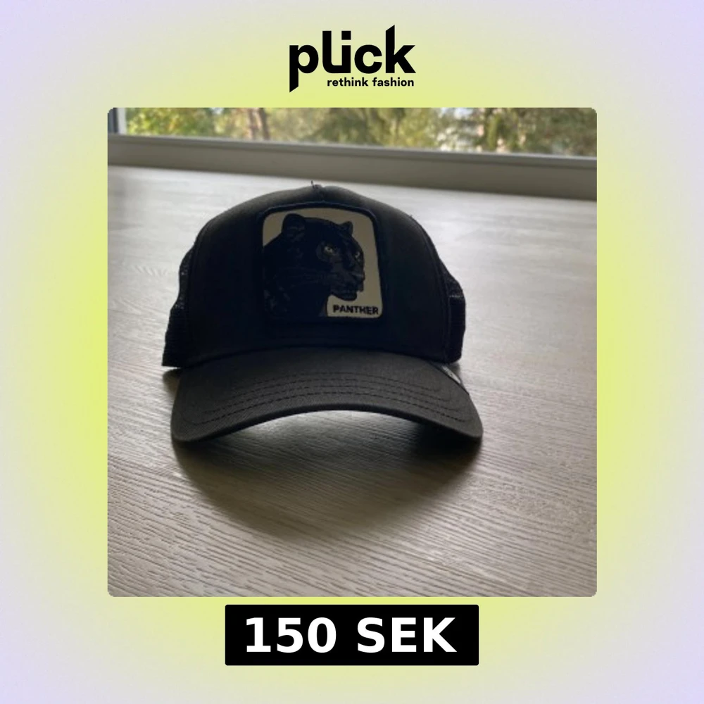 Svart keps från Goorin Bros. med mesh på sidorna och bak, samt en patch framtill med en panter och texten 'Panther'. Justerbar passform och klassisk böjd skärm. Märkt 'The Farm' på insidan. Perfekt för en cool streetstyle.