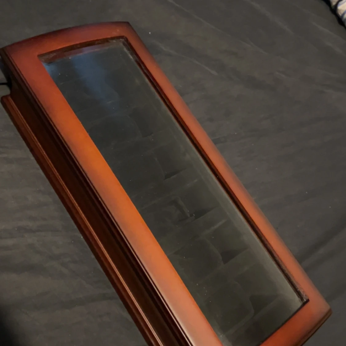 Snygg klocklåda i trä med tjockt plastlock