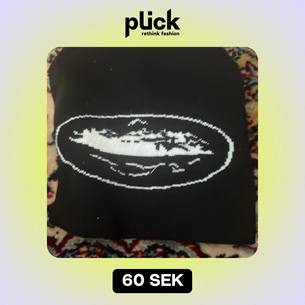 Säljer en svart mössa med en cool broderad detalj på framsidan. Perfekt för att hålla sig varm under höst och vinter. Mössan är i bra skick och passar de flesta huvudstorlekar. Enkelt och stilrent val för kalla dagar!