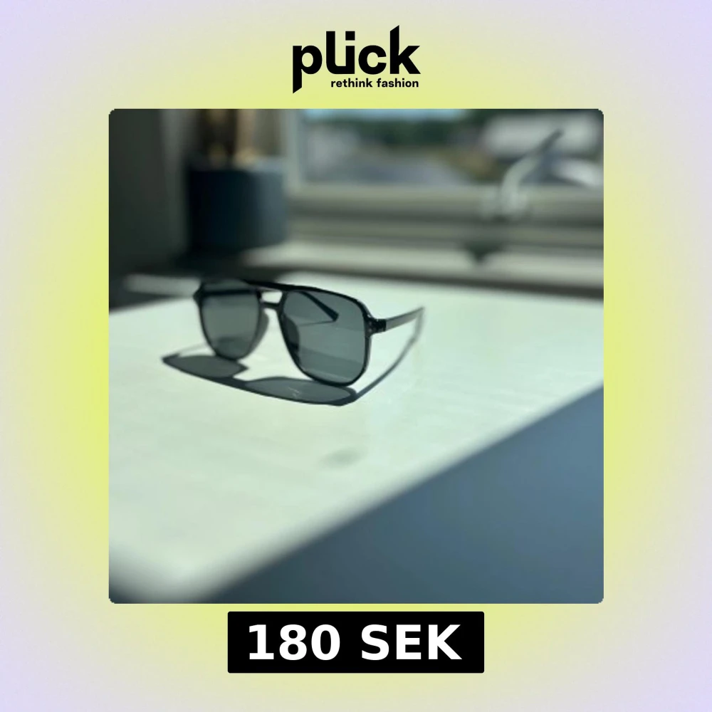 Snygga solglasögon med klassisk pilotform och svarta bågar. Glasen är mörka och ger en cool look, perfekt för soliga dagar. Bågarna är tunna och stilrena, vilket gör dem lätta att matcha med olika outfits.