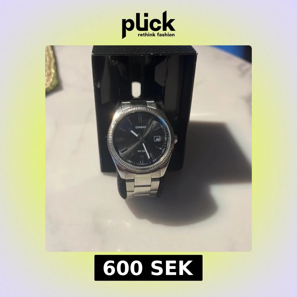 Casio silver klocka med svart urtavla
