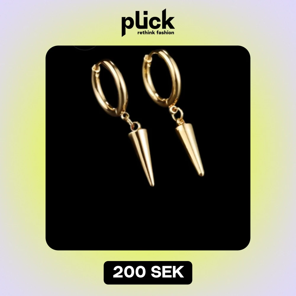 Snygga guldörhängen med coola konformade hängen. Perfekta för att ge din outfit en edgy touch. De är i mycket bra skick och passar både till vardags och fest. Enkla att matcha med andra smycken och accessoarer.
