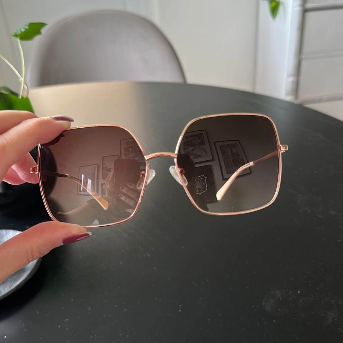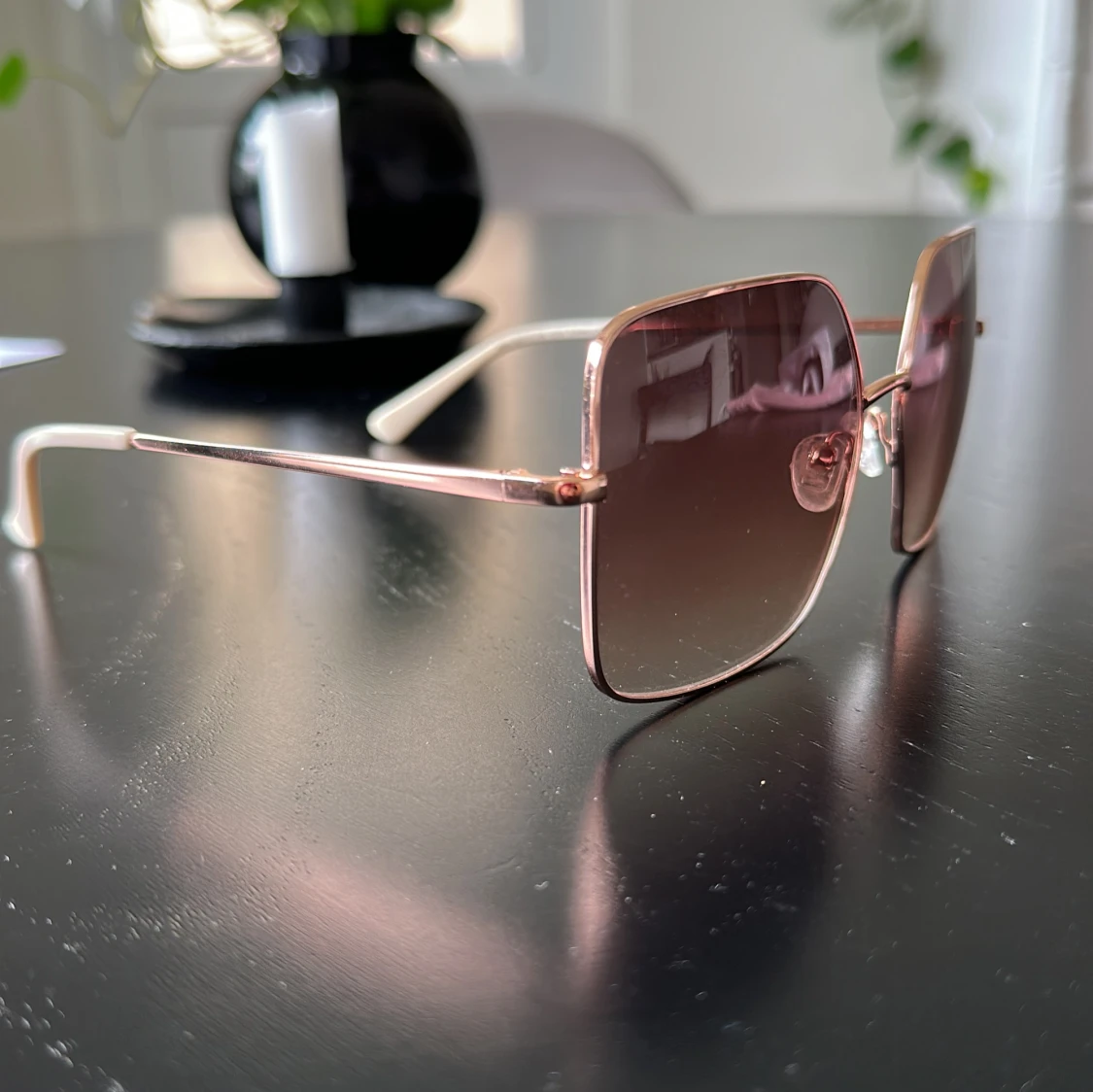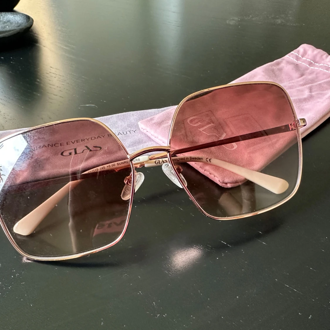 Snygga lätta solglasögon. Aldrig använda endast provade. Båge i rosé. Nypris 995kr. Putsduk och förvaringspåse medföljer.