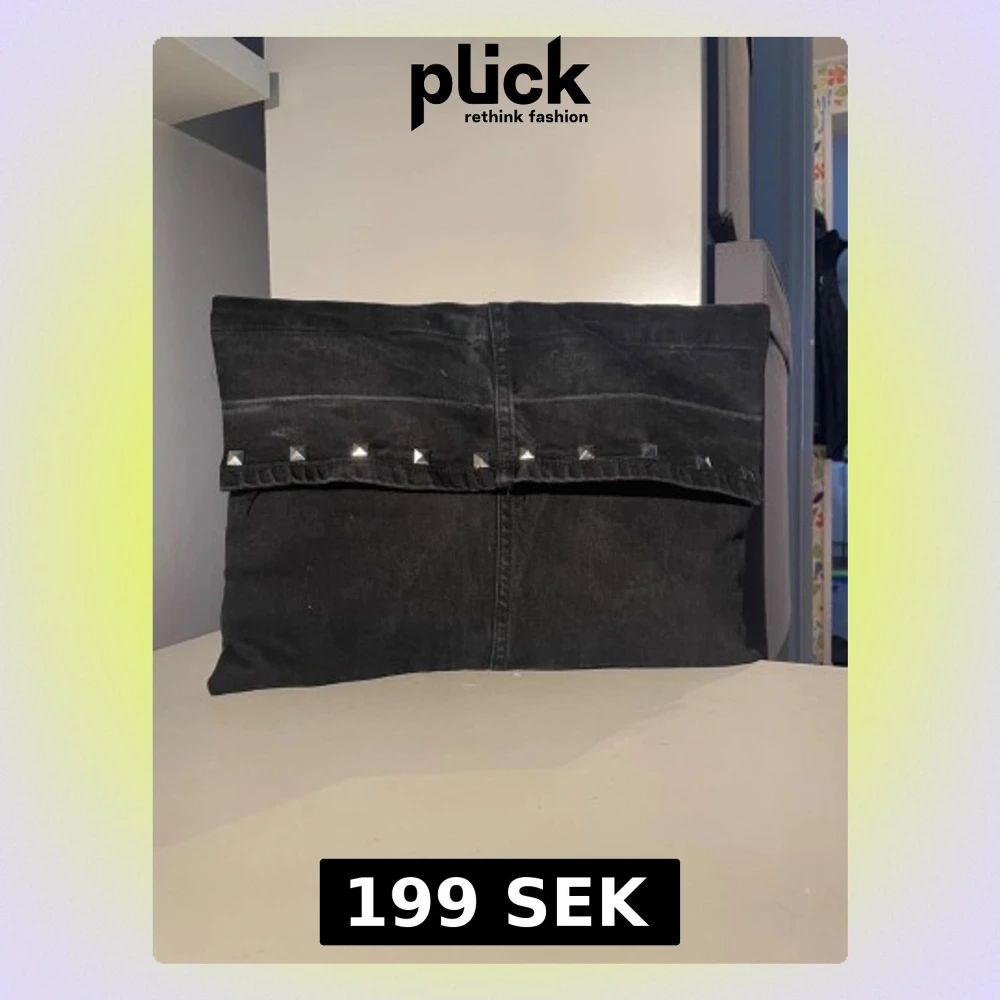 Svart datorfodral av återvunna jeans med filt och silke inuti, silvriga nitar och magnetisk knapp!💙 Fodralet är ca 37x27 cm🌟