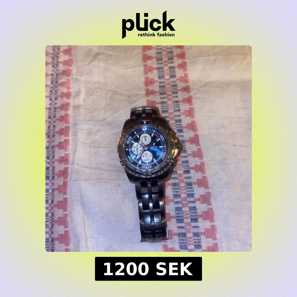 Snygg silverfärgad klocka från Festina med blå urtavla och tre mindre vita subdials. Klockan har en robust metallarmband och tydliga markeringar på bezeln. Perfekt för den som gillar en sportig och stilren look.