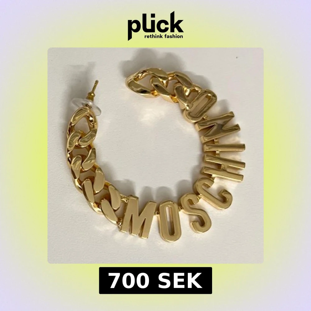 Stilrena guldörhängen från Moschino med kedjedesign och bokstäver som bildar varumärkets namn. Perfekta för att ge en lyxig touch till din outfit. Aldrig använda.