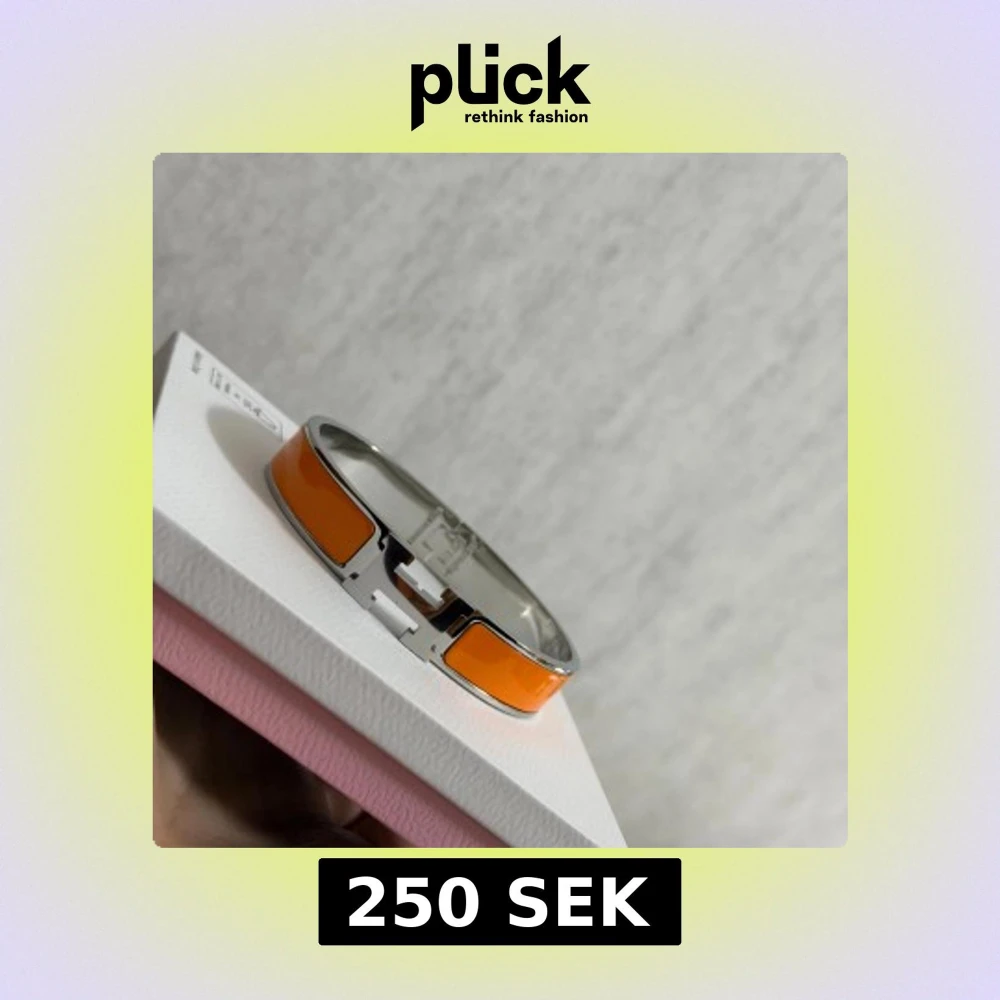 Snyggt och stilrent armband med klassisk H-detalj framtill. Armbandet är i blankt silverfärgat metall med orange emaljpaneler runt om. Perfekt statement piece för dig som gillar färg och exklusiv design.