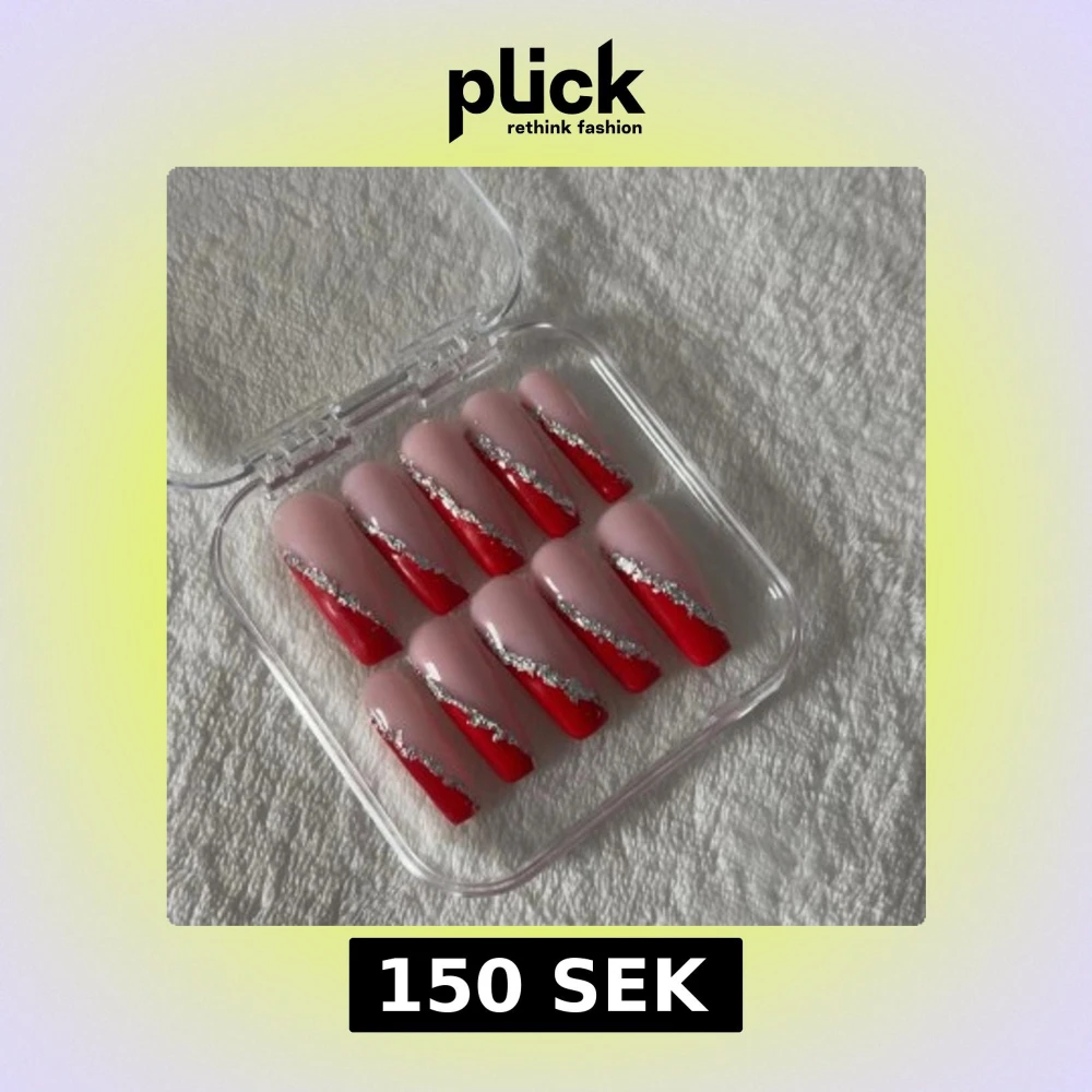 Handgjorda press on naglar Finns i olika storlekar, längd och form Du kan även önska annan design Om du är osäker på att dem kommer passa dig med storleken så gör jag dom vid beställning så då utgår jag ifrån kundens naglar