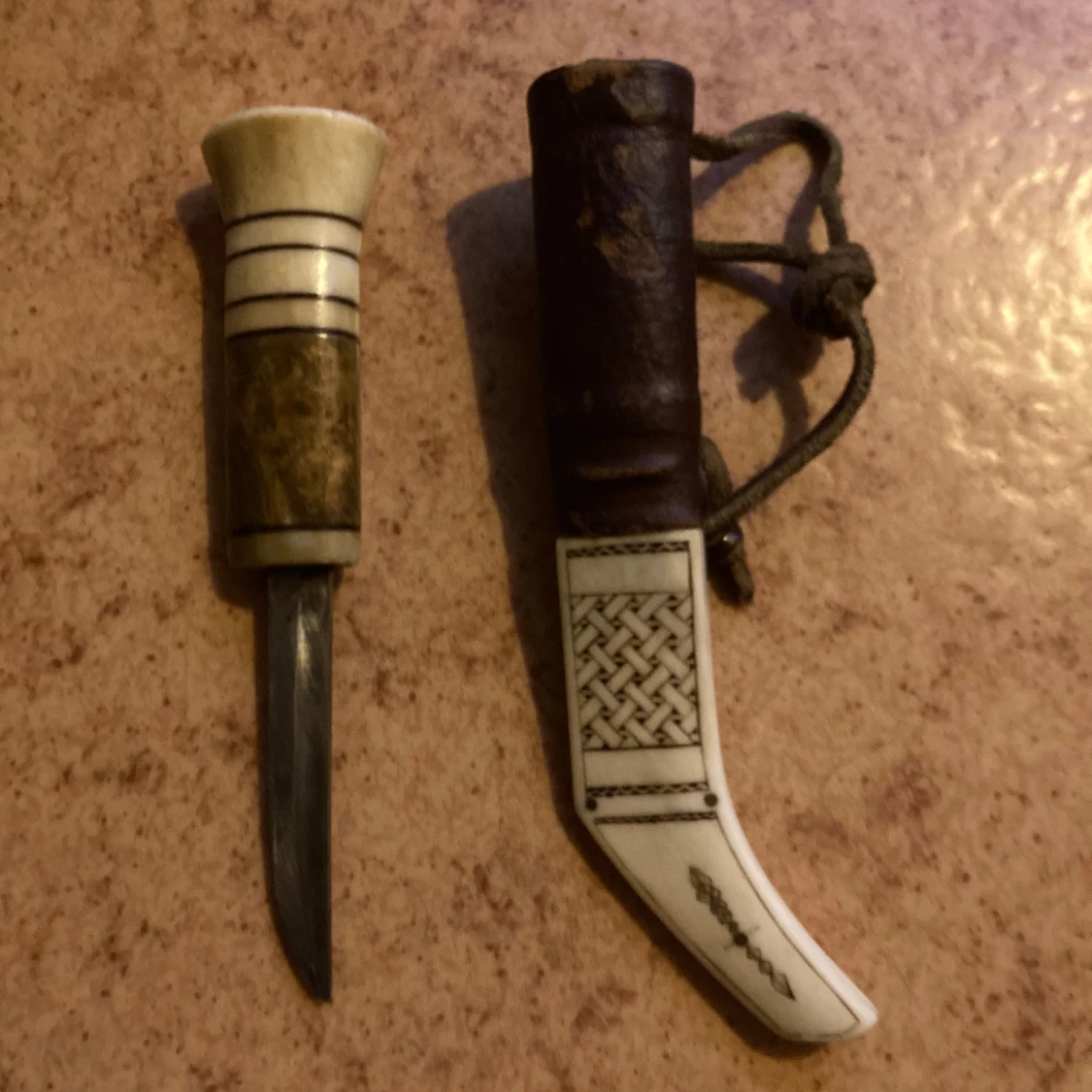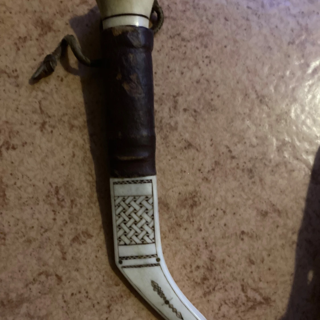 Handgjord kniv av hög kvalitet och bra hantverk bästa material som gör denna jakt och fiske kniv unikt och bra verktyg. Jag kan tillägga att ja köpte den av en same som jobbade mest med handkraft och tålamod ett mästerverk utan å innan