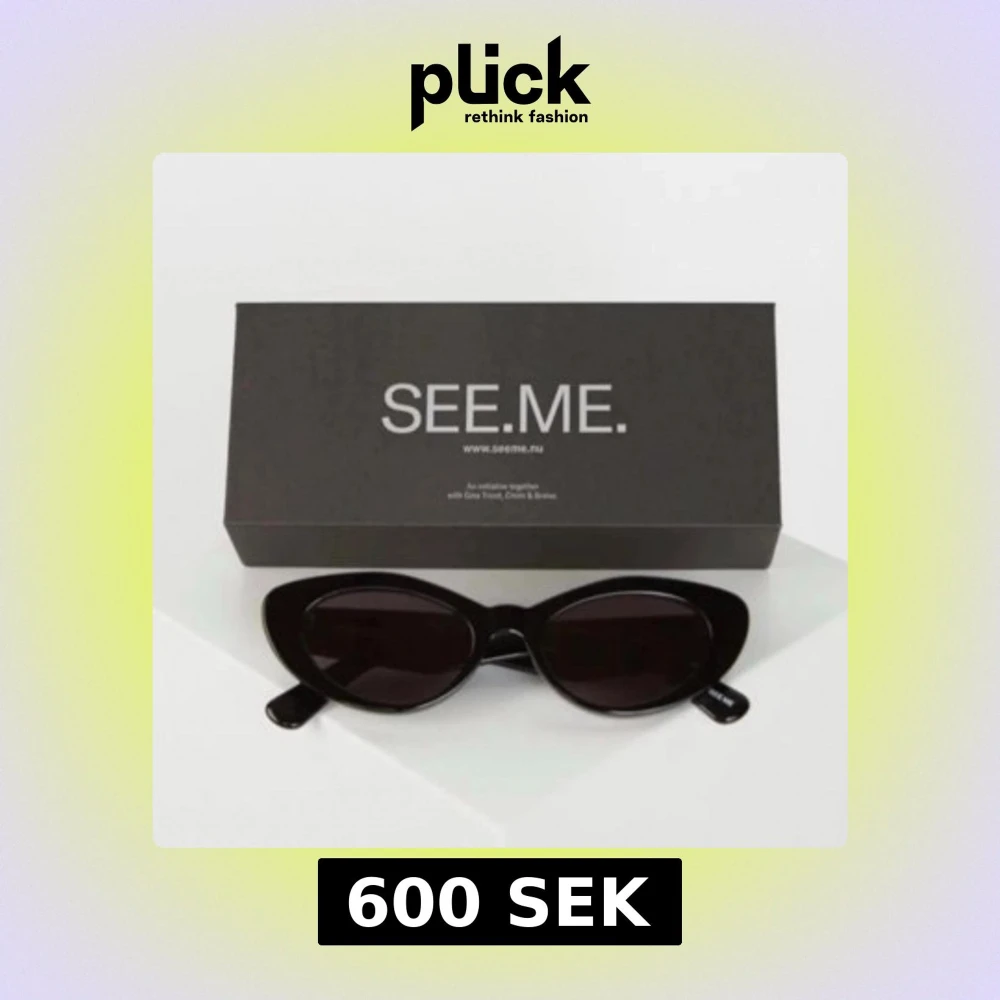 Snygga svarta solglasögon från SEE.ME med trendig cat eye-form. Glasögonen har blanka svarta bågar och mörka glas, perfekta för en cool och stilren look. Kommer med originalförpackning.