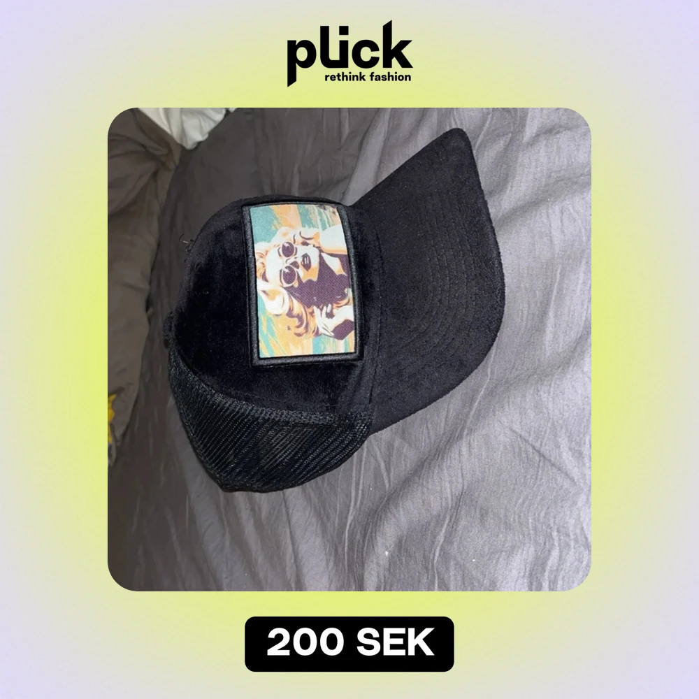 Snygg svart keps med ett coolt tryck av en kvinna med solglasögon på framsidan. Kepsen har ett nätmaterial på sidorna för bättre ventilation. Perfekt för en avslappnad stil eller en dag ute i solen.