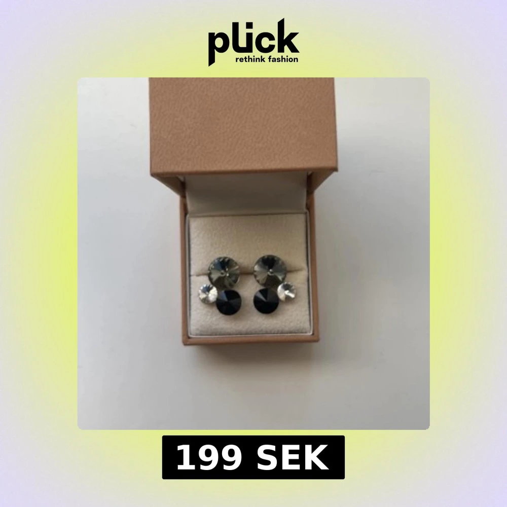 Snygga örhängen med glittriga kristaller i svart, silver och grått.