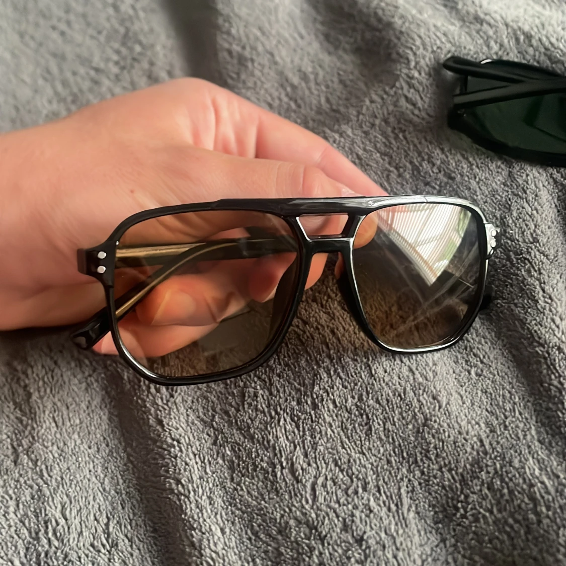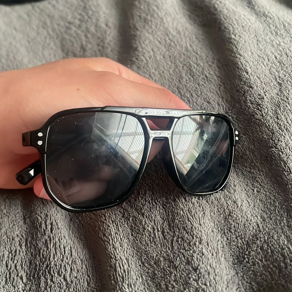 Säljer 3 stycken solglasögon. Bågarna är i plast och har coola detaljer med små silvriga nitar vid sidorna. Linserna är mörka och ger en riktigt snygg vintage vibe. Perfekta för dig som vill sticka ut i sommar! Som kostar 100kr styck