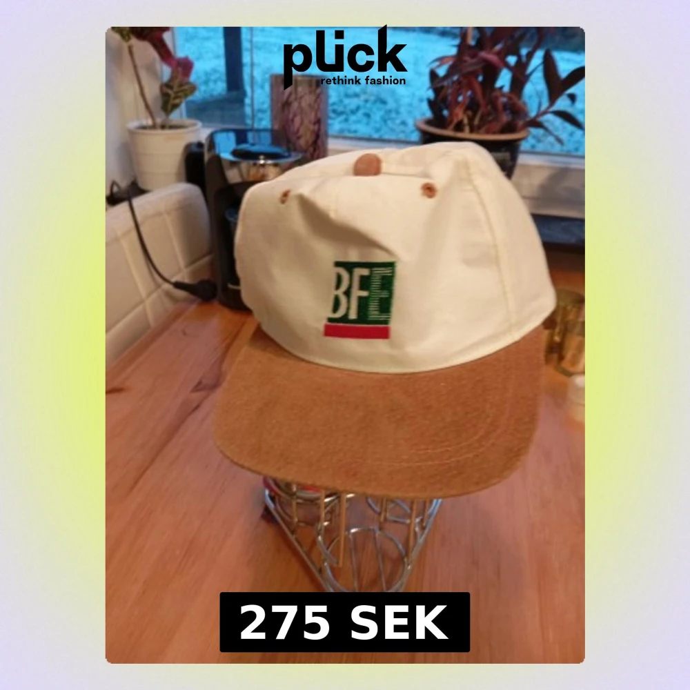 Snygg keps från BFE med vit krona och brun skärm i manchester. Framsidan har en broderad BFE-logga i grönt, vitt och rött. Perfekt för dig som gillar retrostil och vill sticka ut med en unik accessoar.