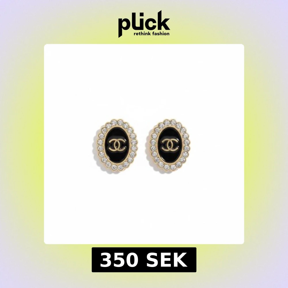 Snygga ovala örhängen med svart bakgrund och guldfärgat. Runt kanten sitter glittrande strass-stenar som ger extra bling. Perfekt för dig som gillar statement-smycken och vill sticka ut med en lyxig vibe.