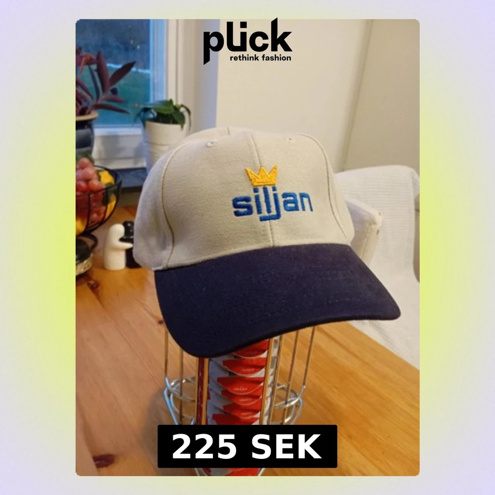 Snygg keps i beige med marinblå skärm och broderad Siljan-logga i blått och gult framtill. Kepsen har en gul krona ovanför texten och justerbar rem baktill för perfekt passform. Tillverkad i slitstark bomull, perfekt för dig som vill sticka ut med stil.