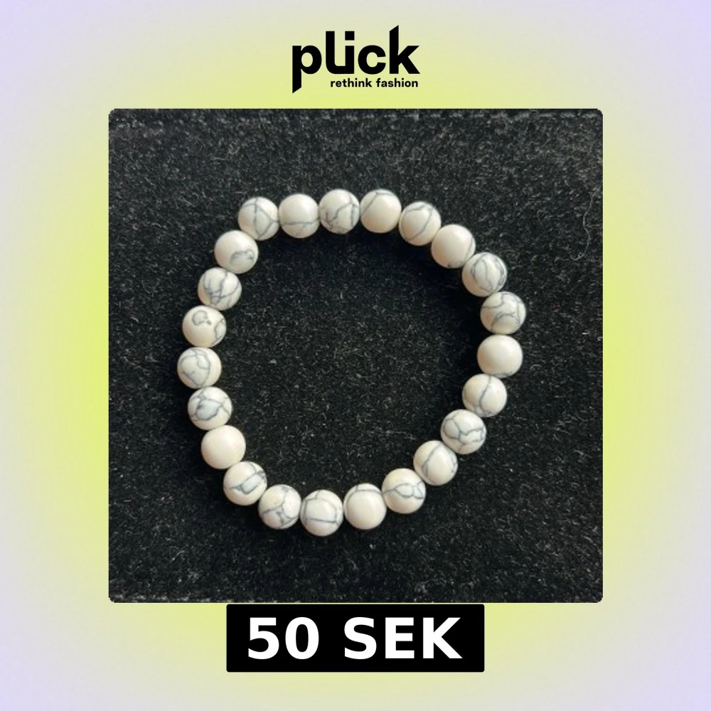 Snyggt armband med runda vita pärlor som har grå marmormönster. Elastiskt band gör det enkelt att ta på och av. Perfekt accessoar för att ge din outfit en clean och stilren touch.