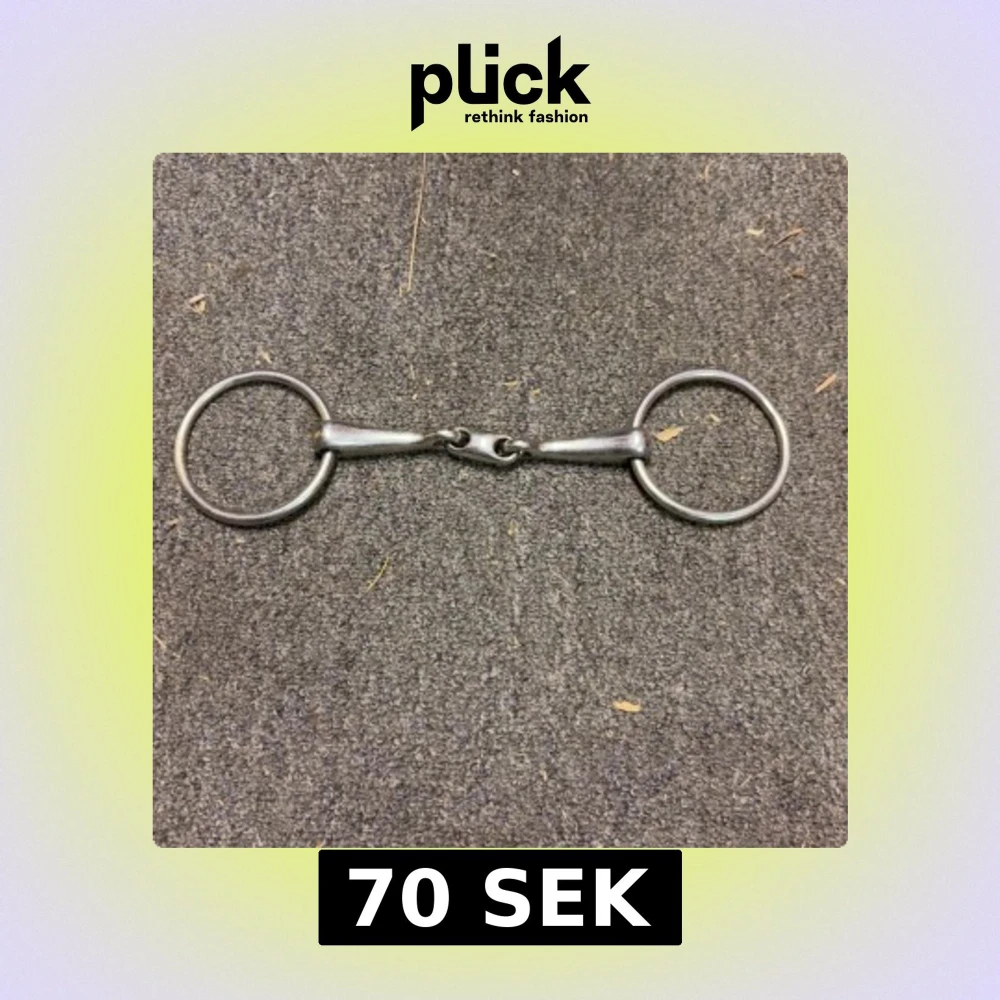 Säljer ett metallbett för ridning. Bettet har en enkel design med två ringar och en ledad mittdel. Perfekt för hästutrustning och ridning. Storlek 14