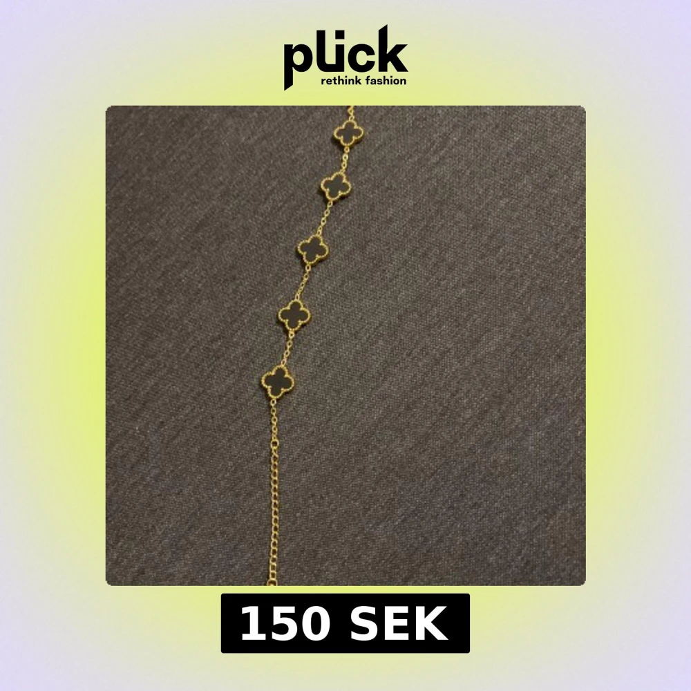 Snyggt halsband med guldfärgad kedja och fem svarta klöverformade hängen. Kedjan är tunn och elegant, och klöverhänget har en fin guldkant som ger extra lyxig känsla. Perfekt för dig som gillar stilrena och trendiga smycken.