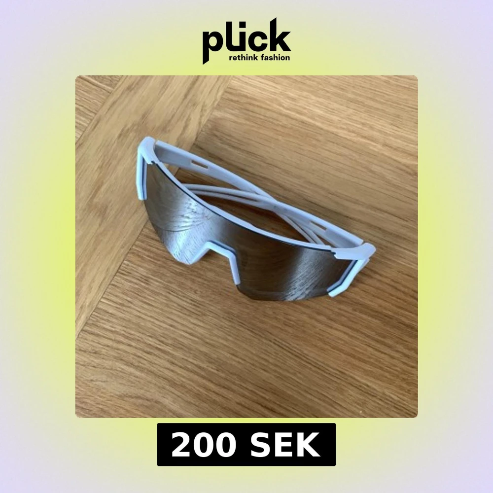 Säljer ett par riktigt feta sport-glasögon med vit båge och stora spegelblanka linser. De har en futuristisk, kantig design och passar perfekt för dig som vill sticka ut på träningen, cykelturen eller helt enkelt stylea till dem. Lätta och bekväma.