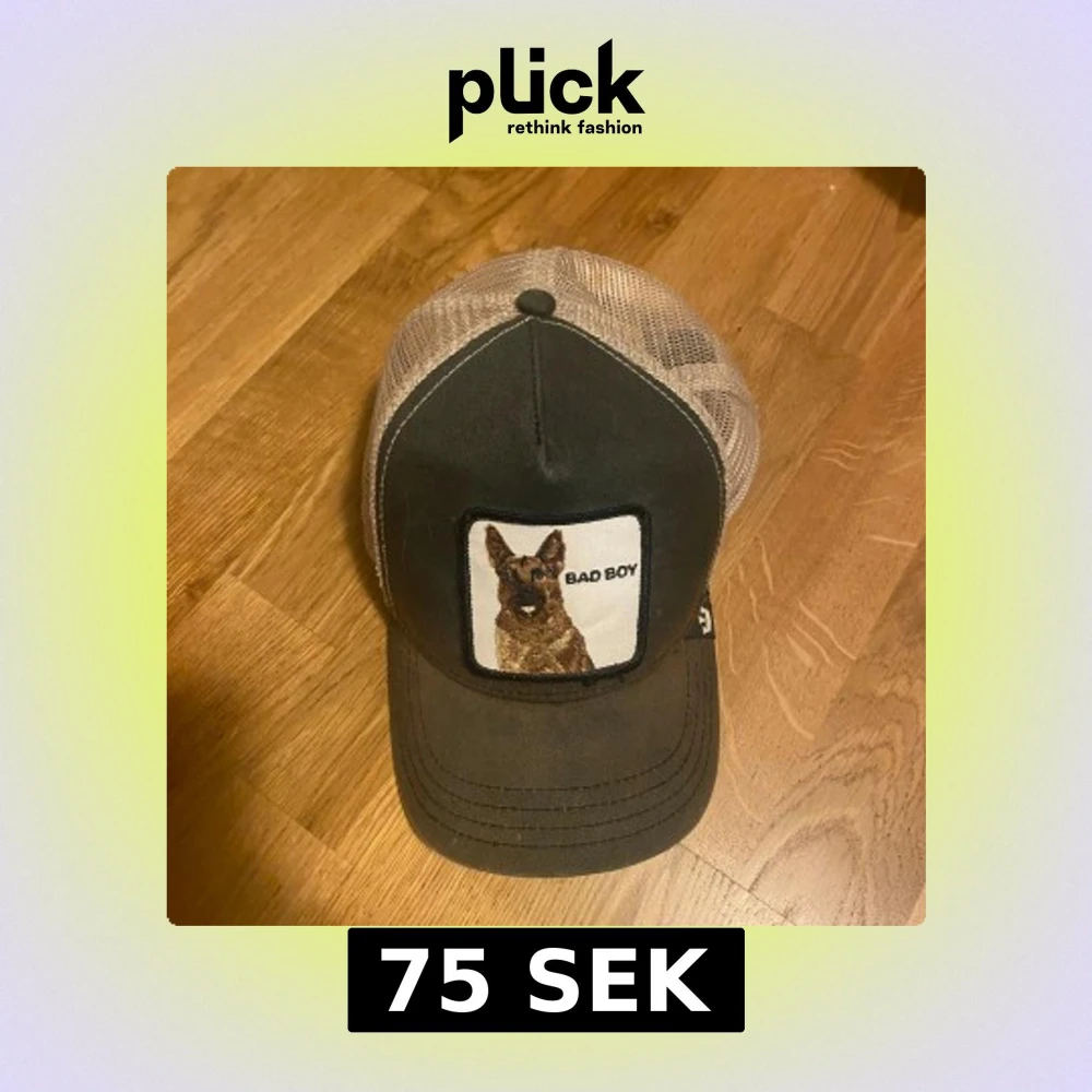 Cool keps i svart och beige med mesh-bak och broderad patch framtill med en hund och texten 'BAD BOY'. Perfekt accessoar för att sticka ut och visa attityd. Justerbar passform och böjd skärm.