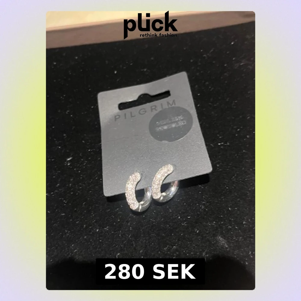 Snygga örhängen i silverfärg från Pilgrim, designade som små hoops med glittriga stenar på framsidan. De är tillverkade av minst 75% återvunnet material och har en modern, stilren look som lyfter din outfit. Perfekta för dig som gillar bling och vill sticka ut. Dessa är även inte använda.