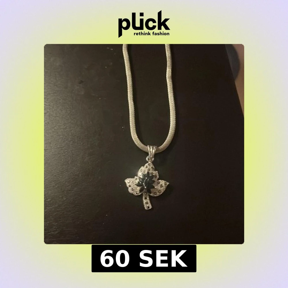 Silvrigt löv format halsvand med tjock kedja och svarta diamanterđ»Nypris: 160kr
