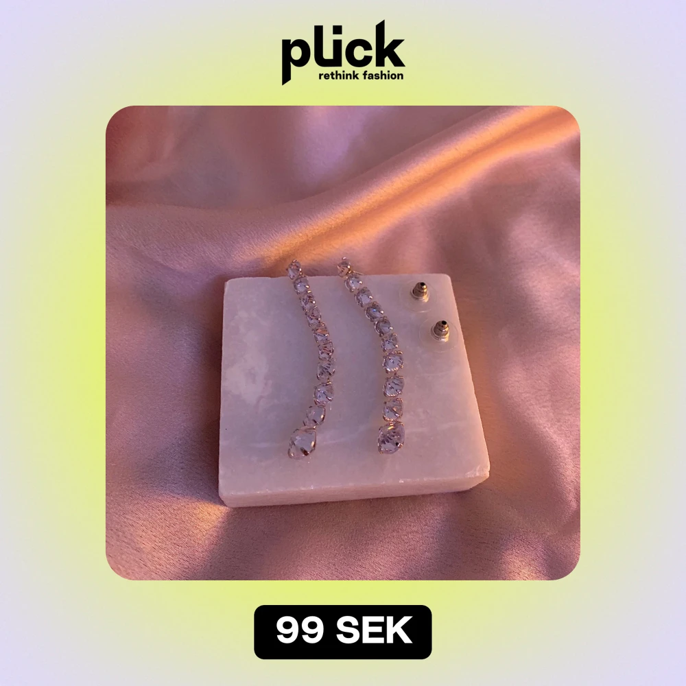 Säljer ett par superfina glittriga örhängen i silver. De är långa och eleganta, perfekta för fest eller nyår. Örhängena har en rad av gnistrande stenar som fångar ljuset på ett magiskt sätt. Passar perfekt till en glamorös outfit! ✨