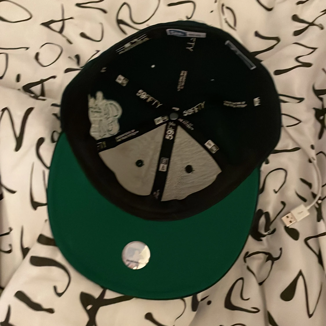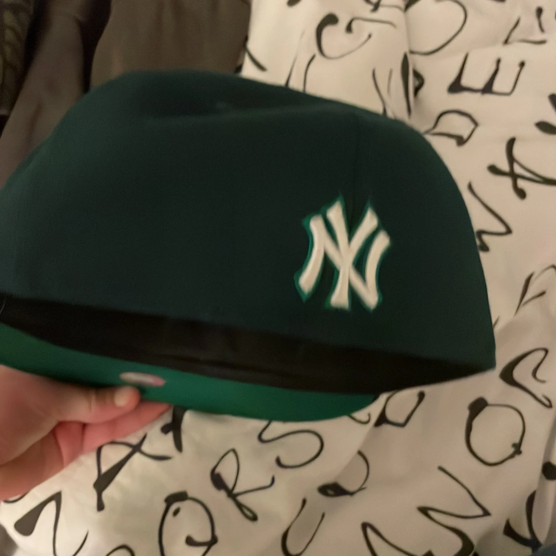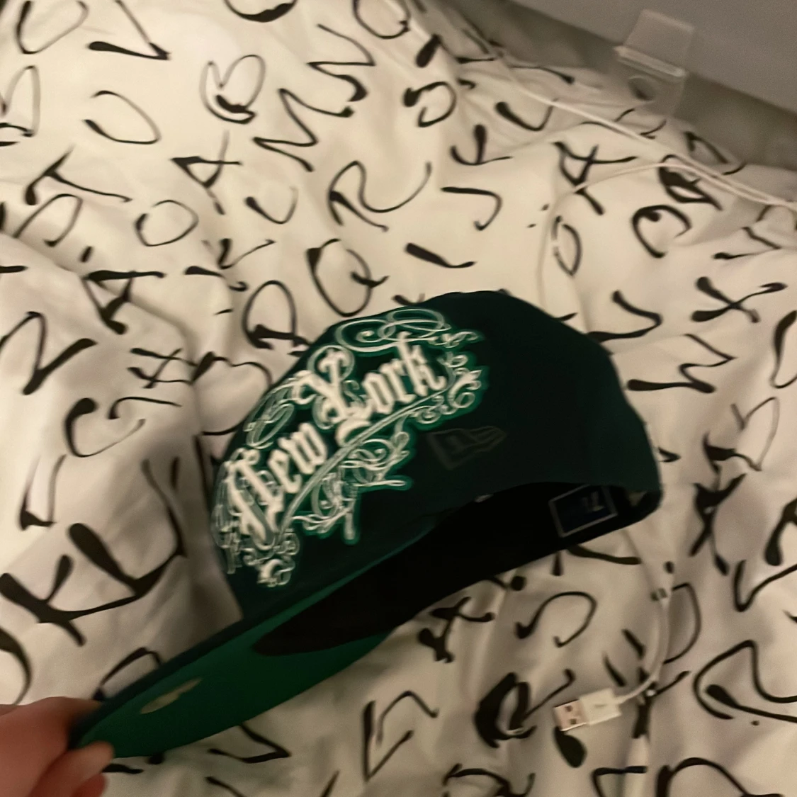 Snygg grön keps från New Era med broderad text 'New York' i vitt på framsidan. Kepsen har en platt skärm och justerbar passform. Perfekt för att ge din outfit en cool touch. Priset kan sänkas vid snabb affär