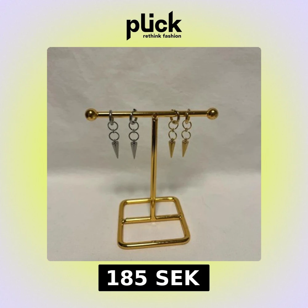 Två par örhängen med coola konformade hängen, ett par i silverfärg och ett par i guld. Hängena sitter i små ringar som ger en edgy vibe. Perfekt för dig som gillar minimalistisk men ändå statement smycken.