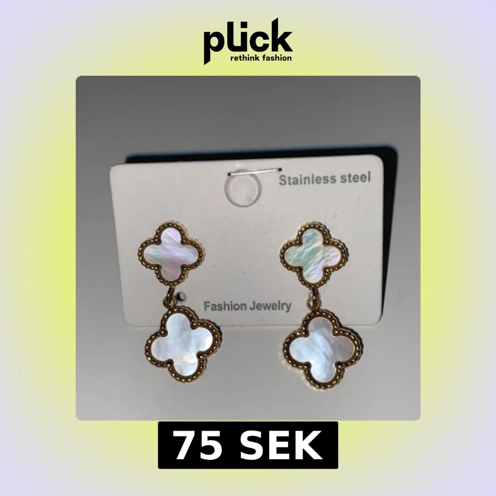 Säljer dem här super fina örhängena i Guld stainless steel! Vit i mitten och matchar med ett klöver halsband som jag säljer.
