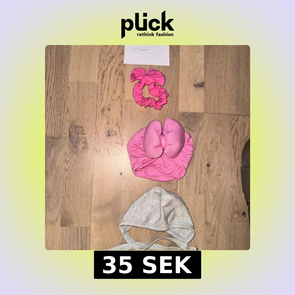 Säljer två söta baby-mössor: en rosa mössa med stor rosett framtill och en enkel grå mössa med knytband under hakan. Perfekt för små barn 0-3 månader. Båda är mjuka och bekväma, tillverkade i bomull.Ett set med tre söta accessoarer för bebisar. Inkluderar en grå knythätta, ett rosa pannband med rosett och en rosa hårklämma. Turban mössa pannband hårband
