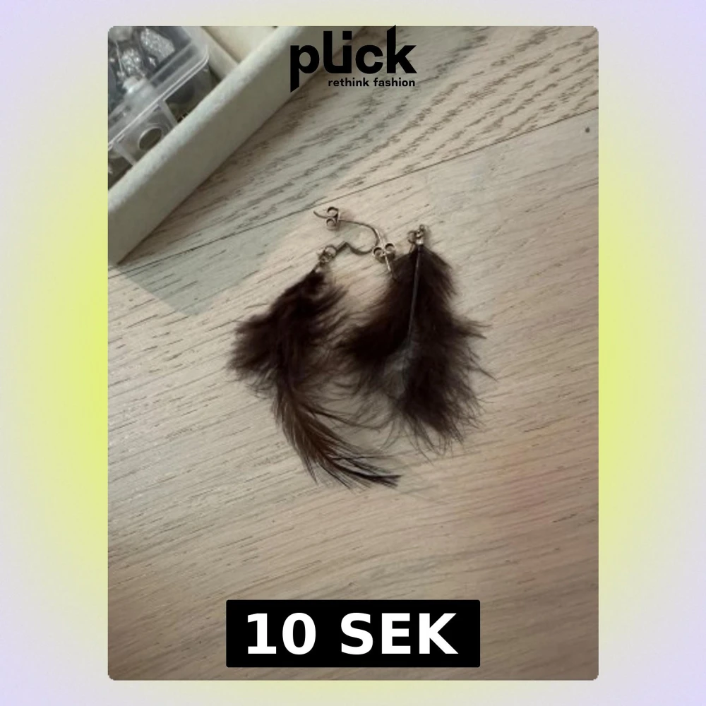 Säljer ett par unika örhängen med bruna fjädrar. De har krokar i metall och fjädrarna ger en bohemisk och trendig känsla. Perfekta för dig som vill sticka ut med din stil och gillar naturinspirerade accessoarer.