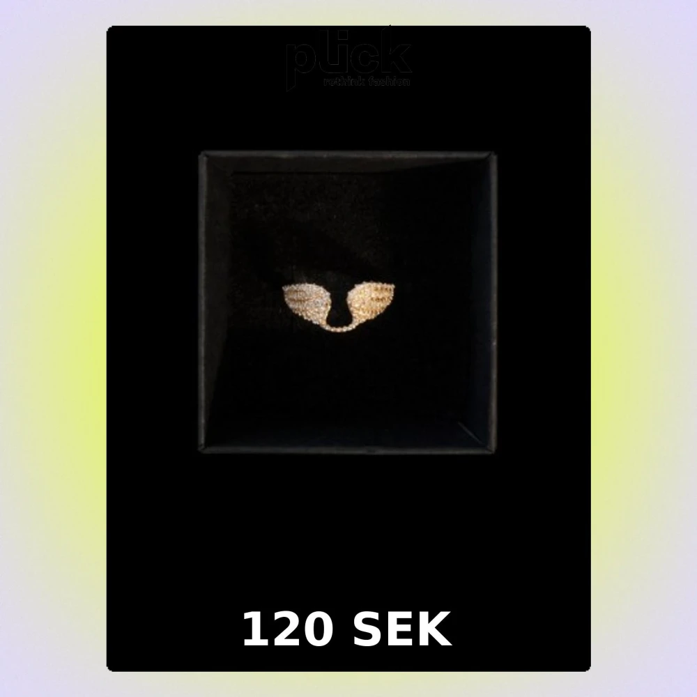Unik guldfärgad ring med två vingeformade detaljer täckta av små gnistrande stenar. Ringen har en öppen design och passar perfekt för dig som gillar smycken med lite edge och elegans.