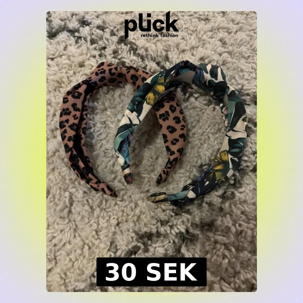 Säljer två hårband, ett med leopardmönster i brun och svart och ett med blommigt mönster i grönt, gult och vitt. Båda har twistad knut framtill och är tillverkade i mjukt tyg. Typ helt nya och i jättebra skick🫶🏼💕