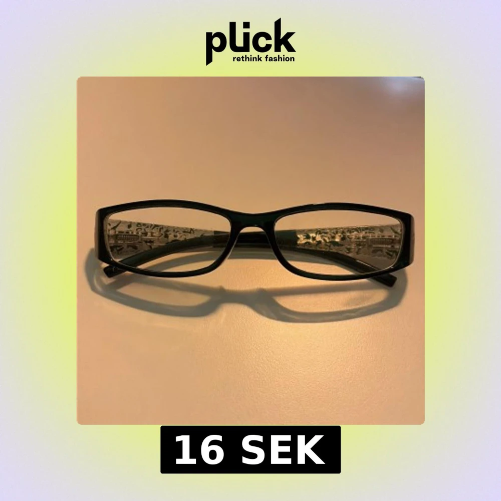 Mörk gröna glasögon med rektangulära bågar och unika blommiga detaljer.🌱👓