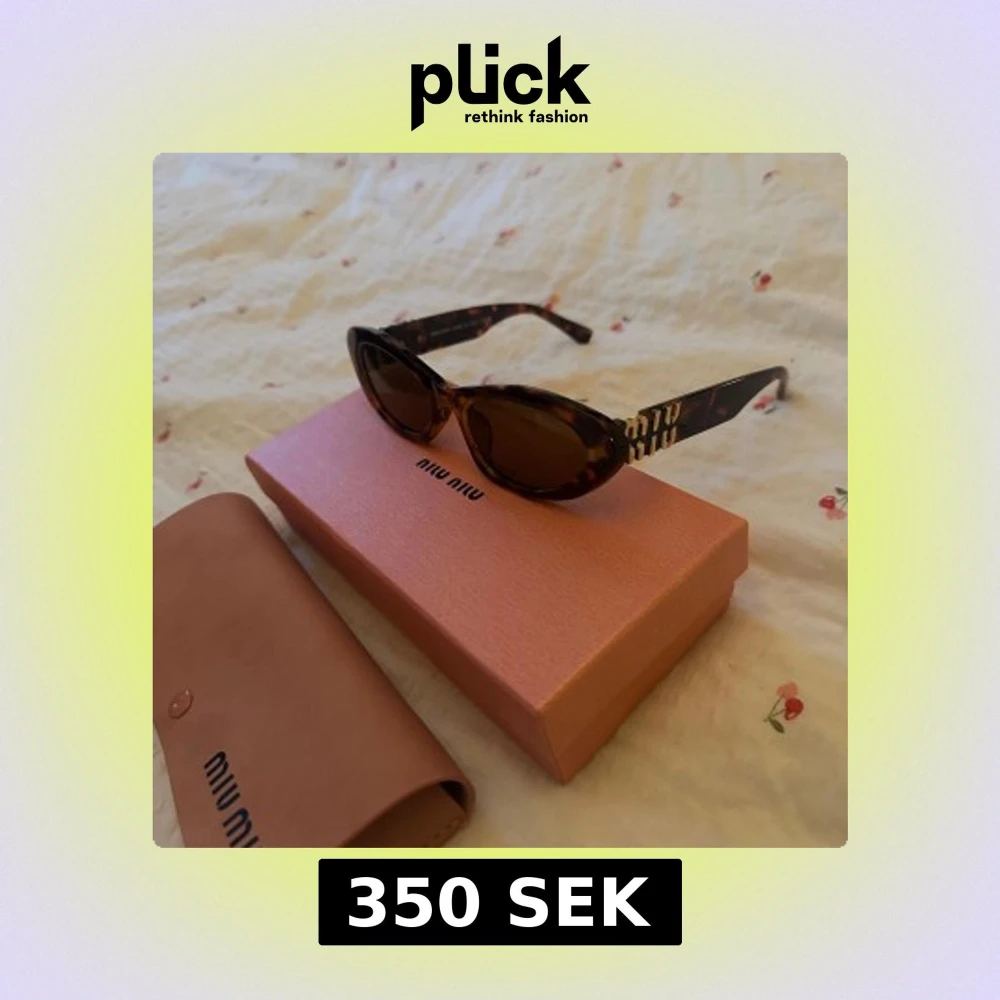 Snygga cat eye solglasögon från Miu Miu med brunmelerat mönster och guldiga detaljer på skalmarna. Glasögonen har en smal, retroinspirerad form och kommer med originalfodral och ask. Helt nya och oanvända. Inget kvitto, ni vet varför det är billigt 🌸