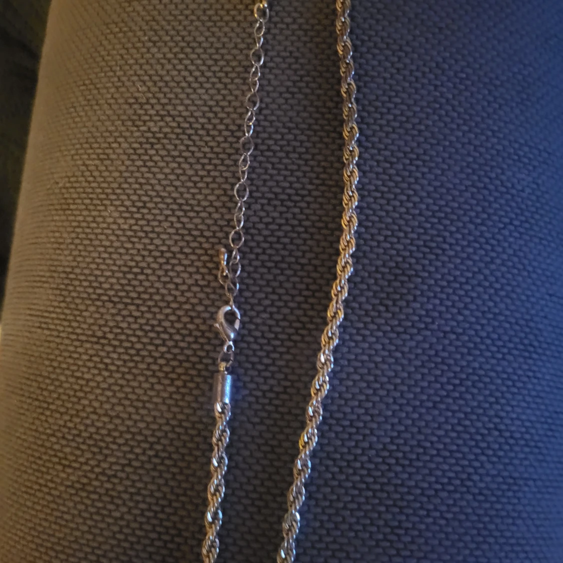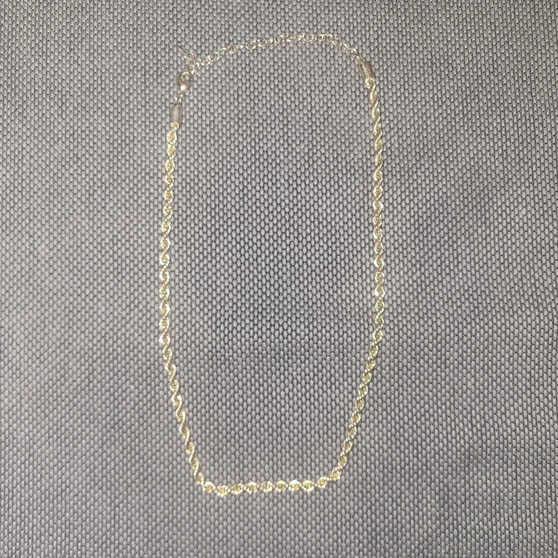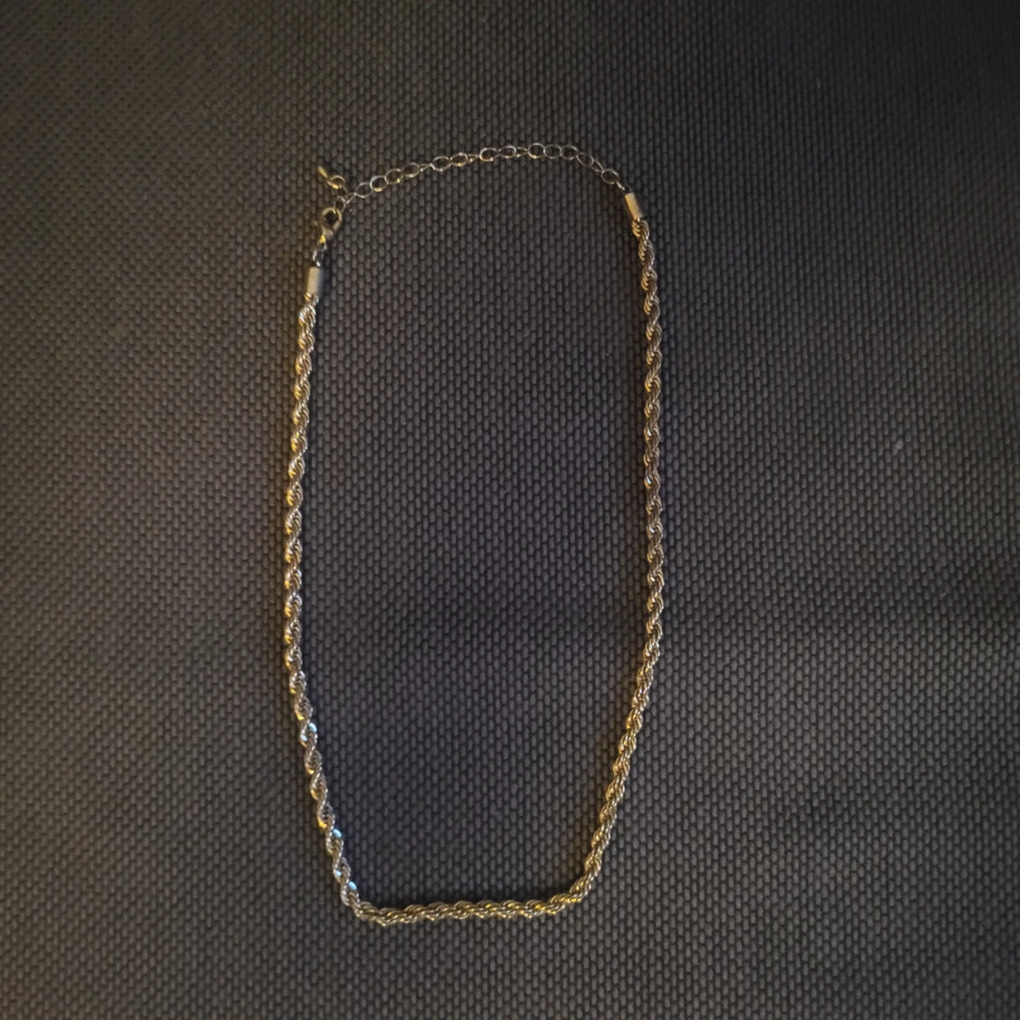 50cm lång, 2mm tum. Snyggt guldfärgat halsband med tvinnad kedja och justerbar längd. Perfekt accessoar för att lyfta din outfit med en stilren touch. Kedjan har ett klassiskt lås och passar dig som gillar enkel men trendig design. (KAN ÄVEN BYTAS MOT SKOR, KLÄDER)