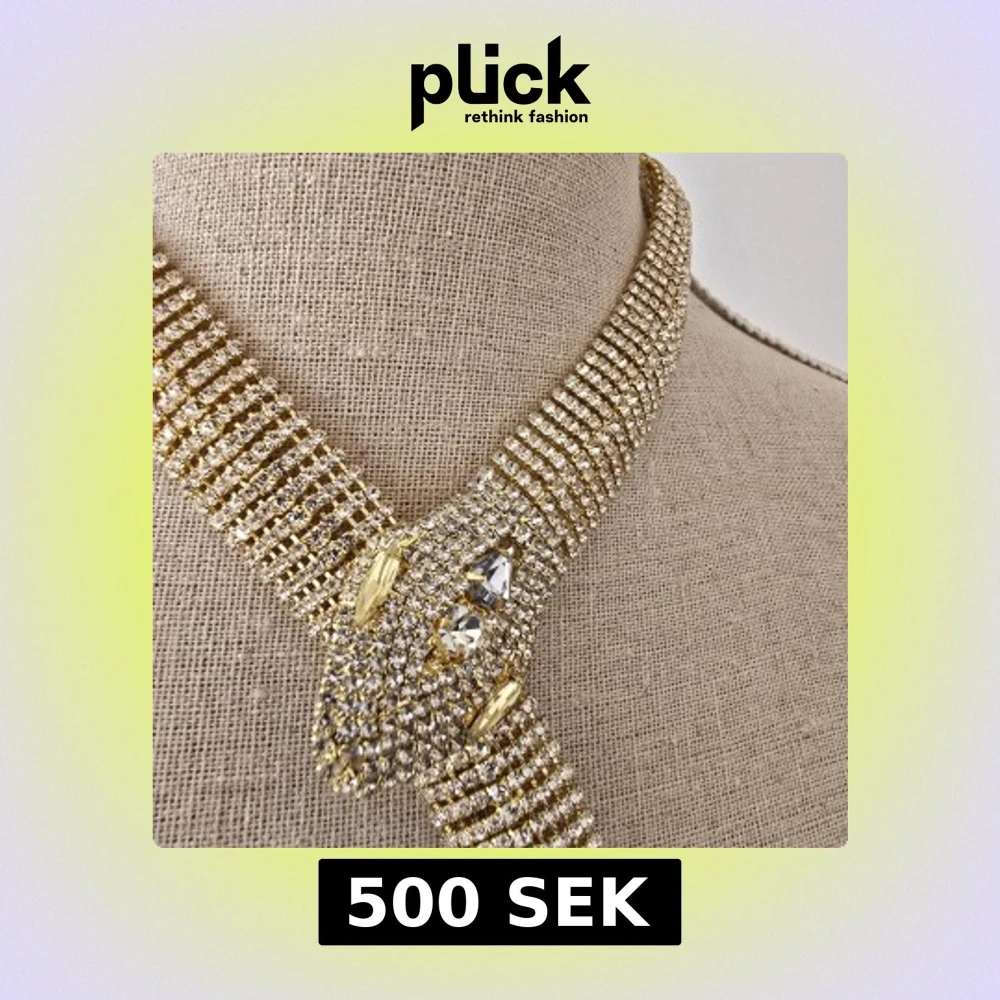 Statementhalsband i guld med glittrande stenar, formad som en orm. Halsbandet har tätt satta strass och detaljer i både guld och silver, vilket ger en lyxig och unik look. Perfekt för dig som vill sticka ut och älskar djurmotiv.