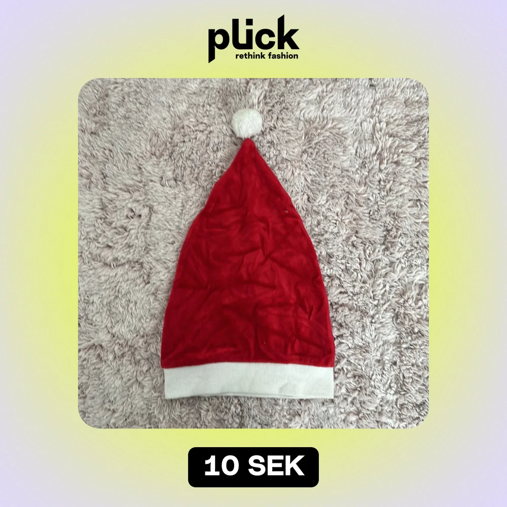 Säljer en klassisk röd tomteluva med vit kant och en fluffig vit boll på toppen. Perfekt för julfirandet och att sprida lite extra julstämning. Luvan är mjuk och bekväm att ha på sig hela dagen. Passar de flesta huvudstorlekar. 🎅✨