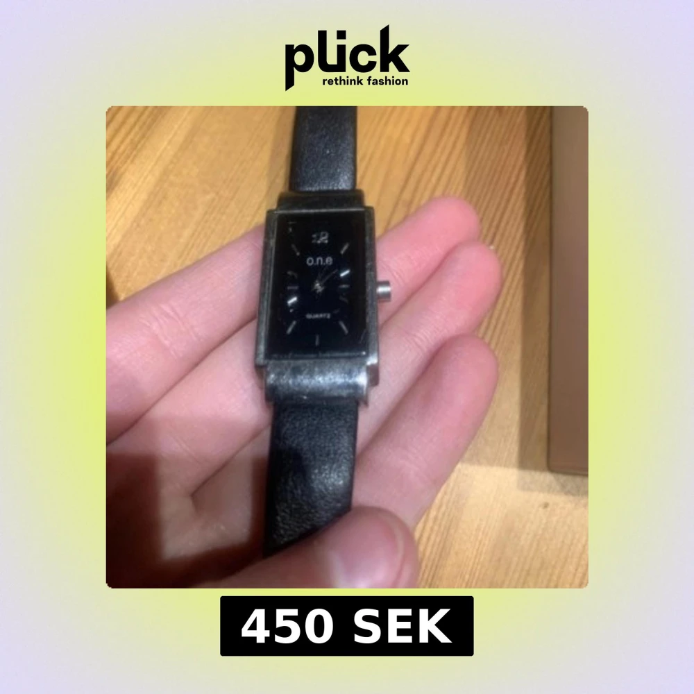 Elegant svart rektangulär klocka från o.n.e med en stilren design. Klockan har en svart urtavla med silverdetaljer och ett svart läderarmband. Perfekt för en minimalistisk stil.