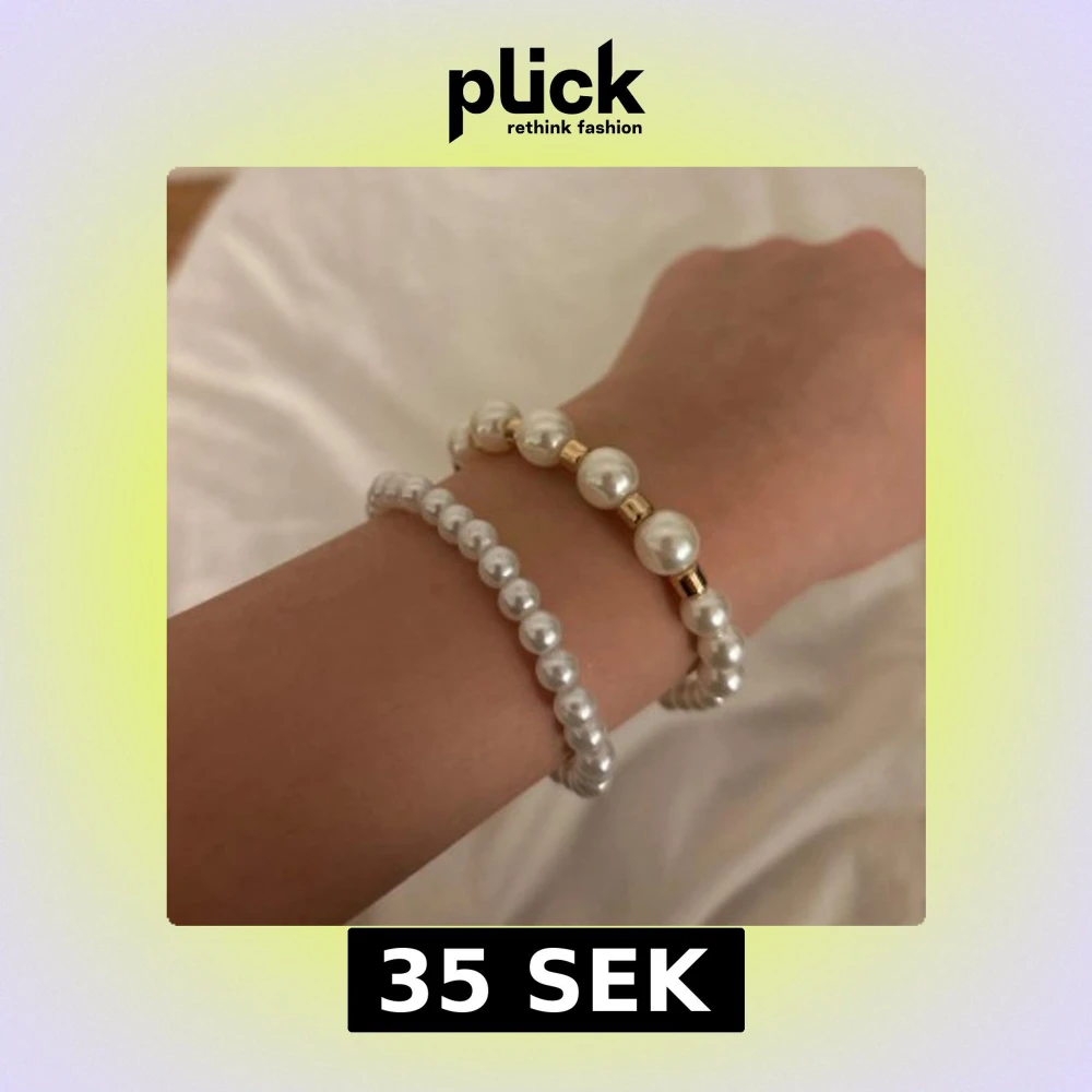Elegant set med pärlarmband och matchande örhängen. Armbandet har vita pärlor med gulddetaljer, medan örhängena är i en klassisk hoop-stil med vita pärlor. Perfekt för att ge en sofistikerad touch till din outfit.