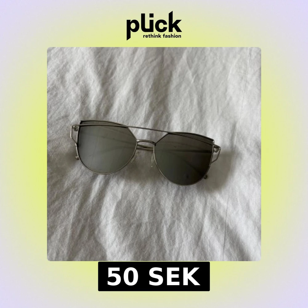 Snygga solglasögon med rundade, mörkgrå linser och en unik silvrig metallbåge. Bågen har en cool, geometrisk design med dubbla linjer över glasen och tunna skalmar. Perfekt för dig som gillar en modern och edgy stil.