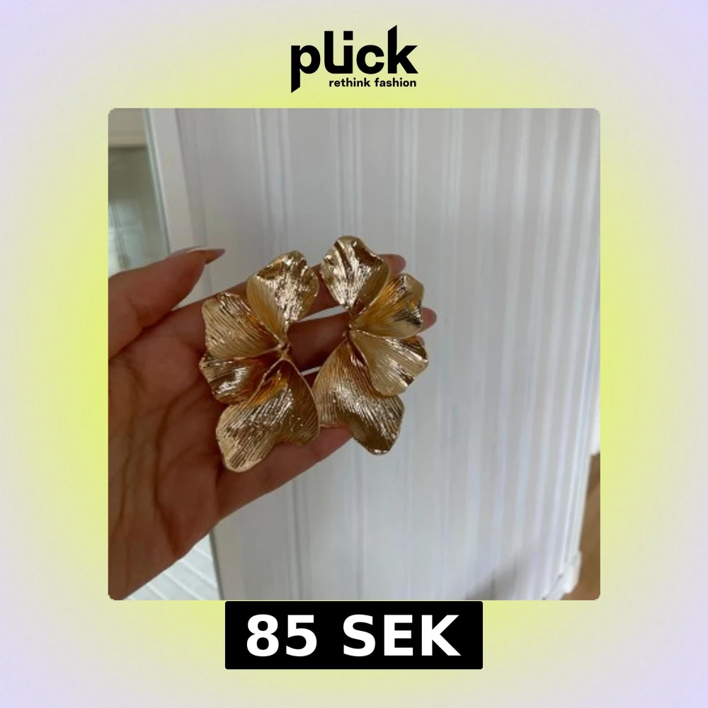 Säljer ett par stora, blommiga örhängen i guldmetall. De har en snygg, organisk form som påminner om blomblad och ger ett statement-intryck. Perfekta för dig som vill sticka ut med dina accessoarer.