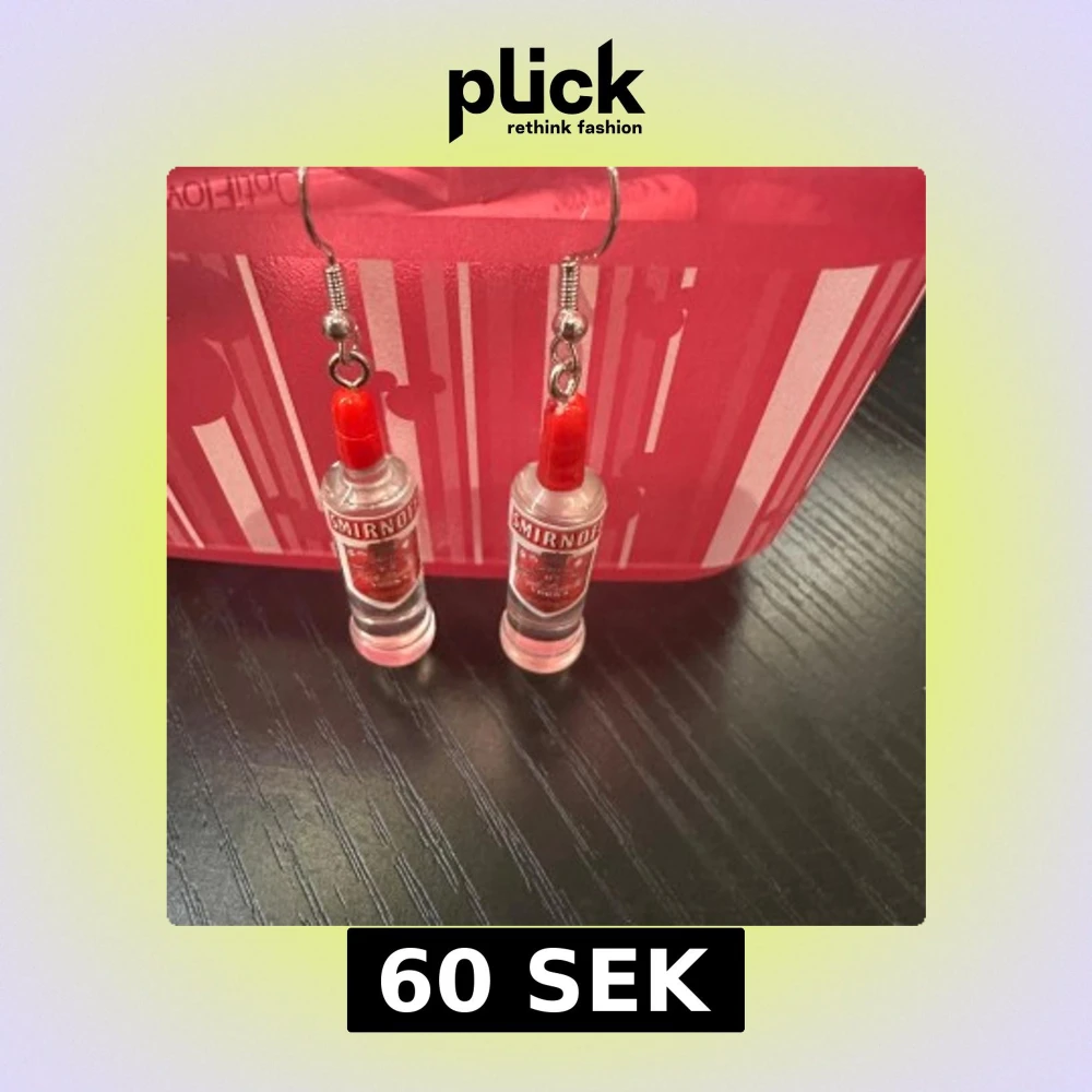 Unika örhängen formade som små Smirnoff-flaskor med röda detaljer och silverfärgade krokar. Perfekt accessoar för dig som vill sticka ut och visa din personliga stil.
