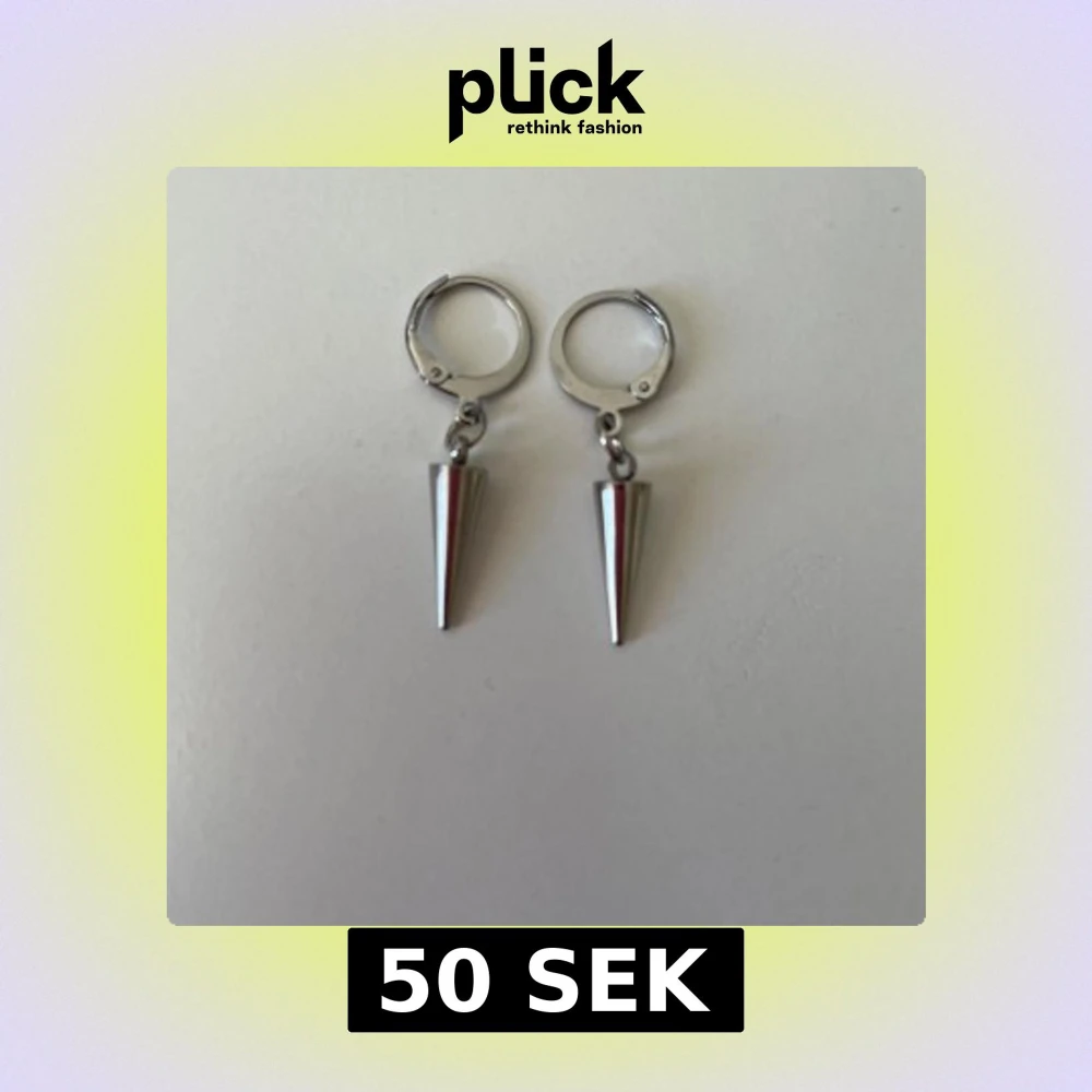 Silverfärgade örhängen med konformad hängande detalj