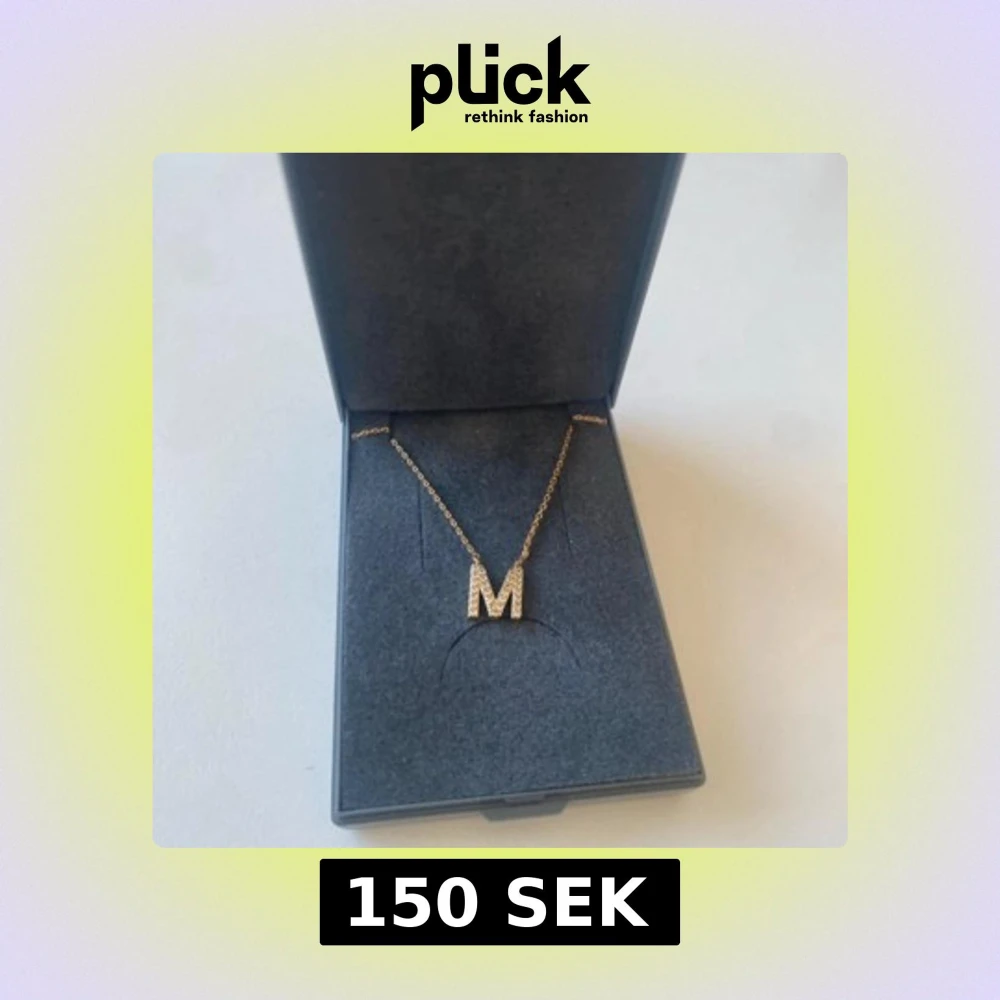Snyggt halsband i guld med en glittrig bokstav M som hänge. Kedjan är tunn och elegant, och bokstaven är täckt av små gnistrande stenar som ger extra bling. Perfekt accessoar för dig som vill ha något personligt och trendigt.