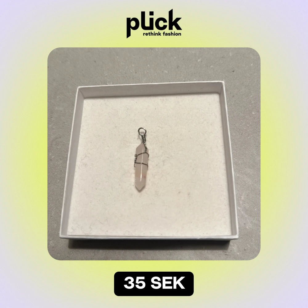 Säljer ett vackert rosa kristallhalsband med en spetsig form. Kristallen är omsluten av en tunn metalltråd som ger en stilren look. Perfekt för att ge en touch av elegans till din outfit.