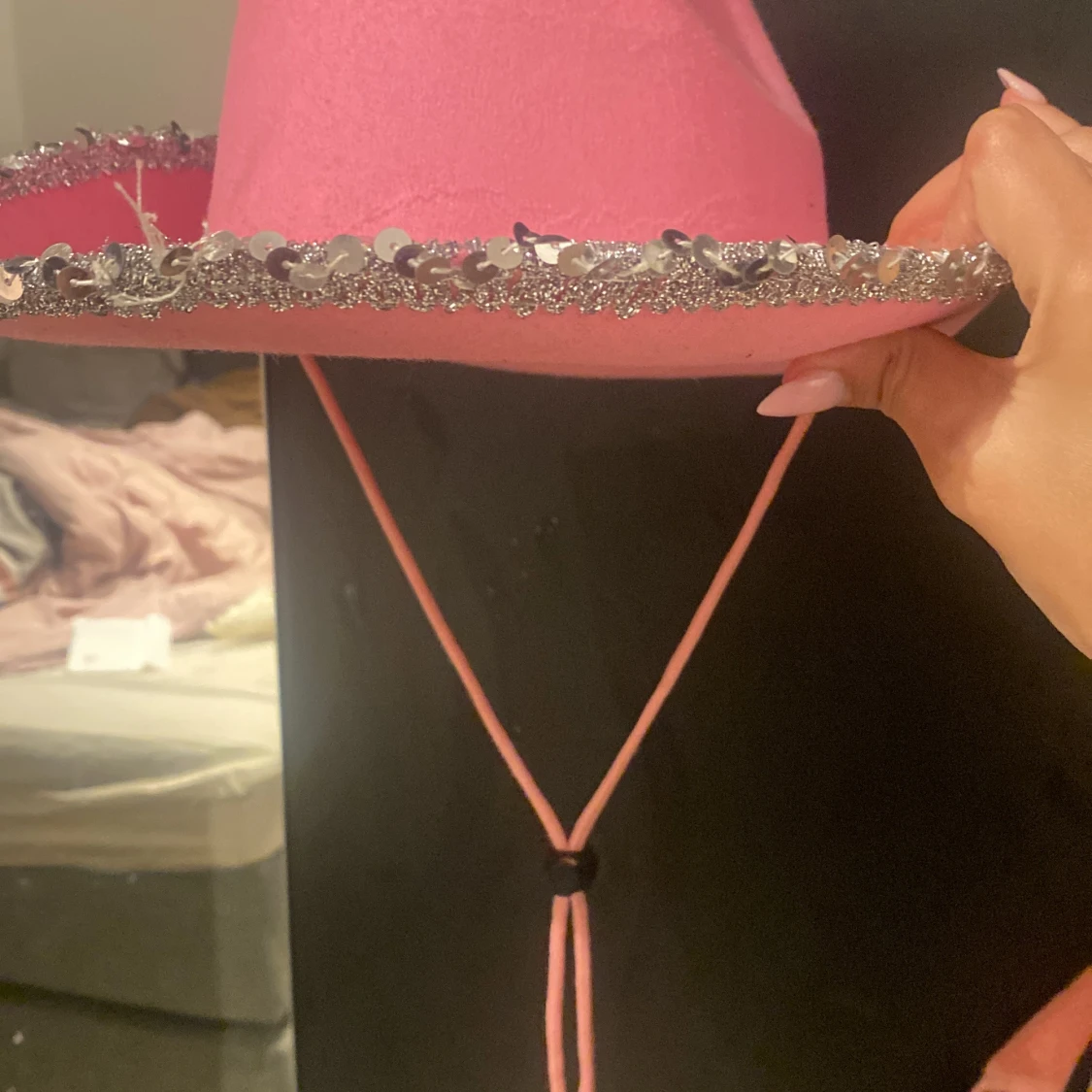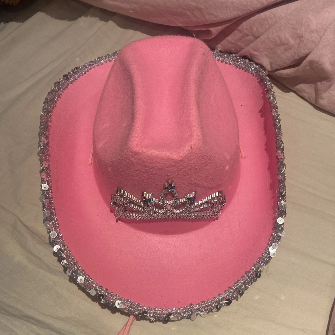 Rosa cowboyhatt med paljetter