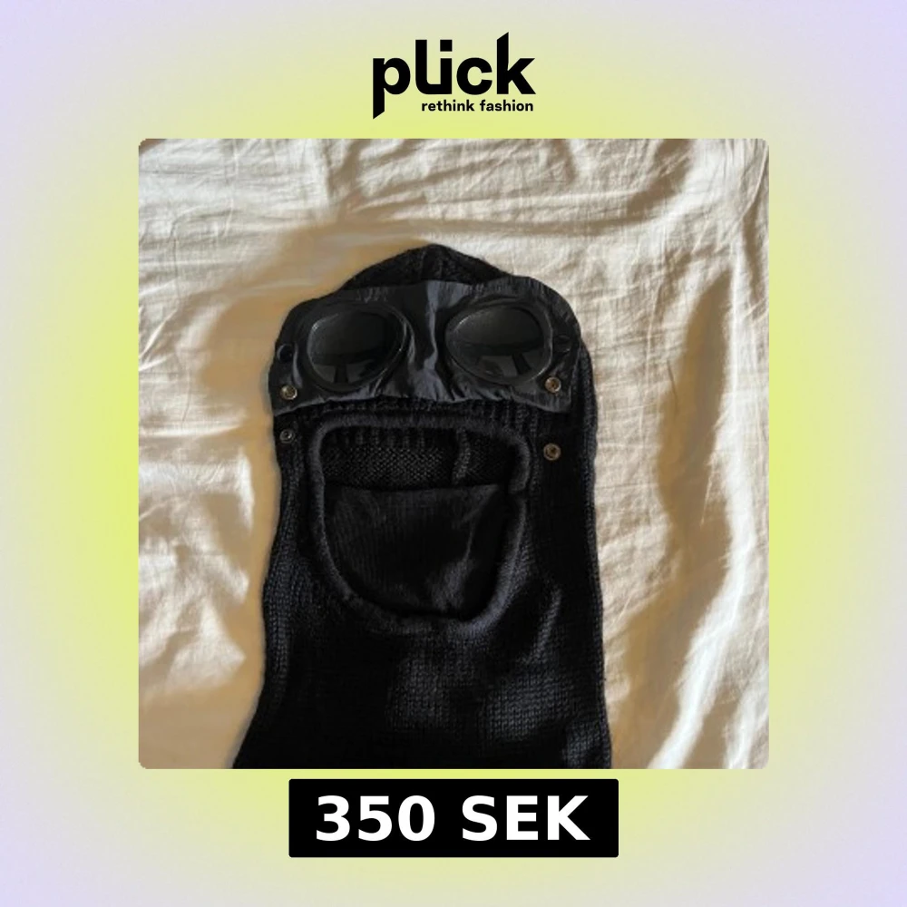 En skimask från cp company som är perfekt för vintern, tillverkad i stickat tyg och har glasögon som man kan sätta på om man vill.